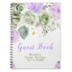 Beautiful sweet sixteen birthday party guest book with sage green and purple floral arrangements. Perfect for a sweet sixteen. The words can be changed to suit your own details or requirements