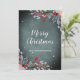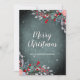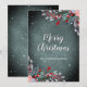 Gorgeous Christmas Holiday Greeting Card with a winter foliage and red berries on a snowy dark background.