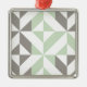 A trendy abstract, geometric cubed pattern in sage green and silver grey.