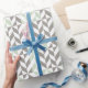 Sage Green and Silver Geometric ZigZag Wrapping Paper
