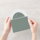 Sage green and white arch modern budget wedding invitations.