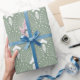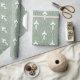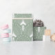 White elegant art-deco geometric seamless pattern on a customisable sage green background.