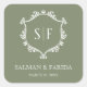 Sage Green and White Crest Monogram Wedding Square Sticker