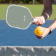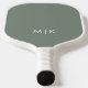 This modern pickleball paddle design features a sage green background, with your initials in bold white text for a look that is simple and stylish, yet professional.