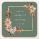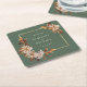 Sage Green Autumn Paper Coaster. Protect surfaces while adding charm to your table with these personalised coasters, featuring watercolor leaves and fall florals in terracotta, rust, and cream on a sage green base. Both decorative and functional, they’re the perfect finishing detail for cocktail hour or reception tables. Let every detail reflect your style—make it yours today.