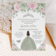 Sage Green Baby Pink Floral Silver Quinceañera Invitation