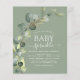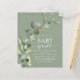 Budget Sage Green Eucalyptus Greenery Succulent Botanical Watercolor Spring Gender Neutral Baby Boy or Baby Girl Baby Sprinkle Shower Invitations on white background - includes beautiful and elegant script typography with modern botanical leaves and greenery for the special Mother to Be celebration.
