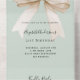Sage green beige cream bow birthday party rsvp all in one invitation