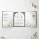 Sage Green Beige Wildflower Butterfly Arch Wedding Tri-Fold Invitation