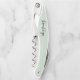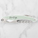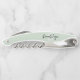 This distinctive personalised corkscrew features a sage green background. Customise it with their name in stylish black handwriting script over a white monogram initial.