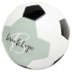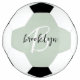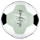 This personalised soccer ball features a monogram and first name in modern black and white script on a sage green background.