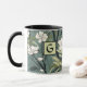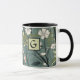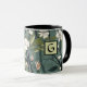 This lovely sage green floral mug features a beautiful Asian print of tropical flowers and golden green leaves in Chinoiserie style. Your initial appears in dark green against a chartreuse square, and is bordered in dark green on the front and back. Make sure to type your initial in the Personalize section. The mug is shown here with a black inside and handle but other options are available.