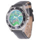 Sage Green, Blue, Black and White Abstract Fluid watch.
