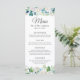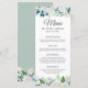 Sage Green Blue White Peonies Floral Wedding Menu Card.