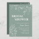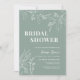 This bridal shower invitation is chraacterised by boho style, floral artwork, and sage green colours, with a mix of different font styles, often in different sizes, to create a unique, eclectic look that makes these invitations natural aesthetic.