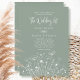 Sage Green Boho White Wildflower QR Code Wedding Invitation