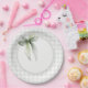 Welcome a little one in style with this sage green gingham baby shower plate, adorned with a delicate watercolor bow. Its soft, timeless look adds an elegant Southern touch to your table and ties your celebration together beautifully.