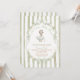 Soft green stripes, bows, and hand-painted florals frame the artwork, creating a cozy rustic cottage aesthetic perfect for boys, girls, and gender-neutral celebrations.