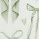 Hand-drawn sage green bows and small hearts scattered on a soft background with a watercolor finish and a playful nursery-friendly feel. All artwork is hand painted by and copyright protected to Kaitlyn Thomas.
