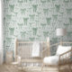 A soft, hand-drawn pattern of sage green bows and hearts scattered across a soft green background. The gentle watercolor texture and muted palette create a calm, playful feel that’s perfect for nurseries, baby rooms, and cozy cottage-inspired interiors. All artwork is hand painted by and copyright protected to Kaitlyn Thomas.