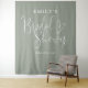 This sage green elegant script bridal shower photo backdrop can be personalised with your name and special date. Designed by Thisisnotme©
