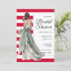 Sage Green Bride Cherry Red Stripes Bridal Shower Invitation