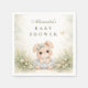 A soft and elegant baby shower design featuring an adorable bunny surrounded by delicate sage green florals and airy botanical greenery. Gentle watercolor textures, small butterflies, and neutral floral details create a calm woodland nursery aesthetic with a refined storybook feel. The natural sage palette gives the design a timeless, gender-neutral look that feels fresh and serene. Perfect for a sage green themed baby shower with a sweet woodland atmosphere.