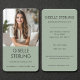 Professional business card designed for business consultants using a soft sage green color palette. The layout includes space for a photo to create a polished, personal presentation while keeping the design clean and easy to read. Suitable for business consultants, advisors, and professional service providers. Fully customizable text and photo placement with a print-ready layout.