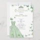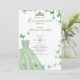Sage Green Butterflies Dress Tiara Quinceanera Invitation