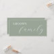 Sage green calligraphy wedding table place card reserved for the family.