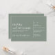 Invite guests in style with this elegant sage green wedding invitation featuring modern serif and handwritten script fonts. With its minimal yet romantic layout and soft botanical backdrop, this design is perfect for vineyard weddings, garden receptions, or sophisticated summer ceremonies.