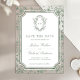 Sage Green Chinoiserie Crest Wedding Save the Date Acrylic Invitations