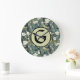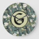 Sage Green Chinoiserie Floral White Initial Large Clock