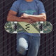 This cool floral monogrammed skateboard features s a beautiful Asian print of tropical flowers and golden green leaves in Chinoiserie style. Your initial appears in dark green against a chartreuse square, and is double bordered in a diagonal color block of black. Make sure to type your initial in the Personalize section.