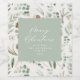 Modern minimum foliage sage green script holiday Christmas personalised photo design. Hand painted eucalyptus, minimal foliage and modern rustic rattan wreath give this holiday design a luxurious feel. In classy sage green, black, browns and greys.