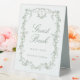 Classic sage green French floral frame guestbook table tent sign with monograms. For more advanced customisation of this design, please click the DESIGN TOOL BUTTON above! Matching items are also available.