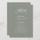 These elegant, sage green wedding welcome programs feature classic and luxe white calligraphy for a timeless, fancy look.