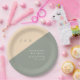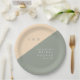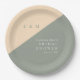 These sage green and cream minimalist, elegant, monogrammed bridal shower paper plates can be personalised with your information in modern typography. Designed by Thisisnotme©