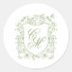 Sage green wedding round sticker with monogram crest, a timeless and refined detail for spring summer weddings, inspired by old money estate, fine art floral and garden aesthetics, perfect for elegant and cohesive brides.