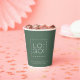 These paper cups, featuring sage green background, custom logo & text would be great for both, regular or promotional use. Easily add your logo & other info by clicking on the "personalise" option.