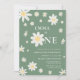 Sage Green Daisy First 1st Birthday invitation One