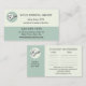 A professional appointment business card for a dentist, featuring a sage green design with space for your custom logo (optional). In case you do not need the logo images, you can simply delete the drawings to reveal the background colour.