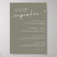 Our Sage Green Dessert Cupcake Menu Wedding Sign is a delightful blend of boho charm and elegant simplicity. Crafted on premium cardstock, it features delicate floral artwork in soothing sage green hues. Personalise it with your names, wedding date, and a mouthwatering dessert menu. Whether you’re serving cupcakes, pastries, or sweet treats, this sign sets the perfect tone for your special day!