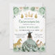 Elegant watercolor Brunette Haired princess in sage green salon western dress design with green and white flowers, butterflies and gold glitter confetti.