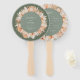 Modern green bohemian pampas grass and dried botanical wedding day party hand fan. Beautiful handprinted floral watercolors and modern script text. Modern on trend design.