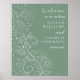 This elegant wedding welcome sign features a delicate floral ornamental design with flowers, birds and leaves on a sage green background. The text combines handwritten script and serif fonts for a stylish and modern look. Perfect for a winter or autumn fall wedding.
