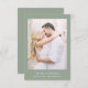 These minimalist and elegant wedding save the date cards feature modern white text on a sage green background, with your personal photo. A chic, simple and stylish look. You can add your scannable QR code to the back so guests can easily visit your wedding website.