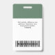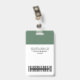 Easily personalise these business name badges without photo, with readable Qr Code (it always works!) and Bar Code and large business logo. This company id maker has a simple business name tag design in organic eco-friendly sage green and white colours fully customisable in front and back sizes, sans-serif basic and modern fonts and a professional and clear look, perfect for small business employee, boss, guests. These business id badges supplies are avaiable with lanyard, metal clip or with retractable. Enjoy excellent Zazzle's badge printing service! No minimum order, and the more you buy, the more you save. Bulk discounts are avaiable with multiple orders, for different employees too!