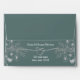 Elegant vintage deep sage green wedding return address 5x7 envelope with silver rope heart and gilded floral lace.