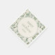 Elegant sage green eucalyptus leaves on cream-coloured wedding paper napkins. Includes the bride's and groom's names and wedding date. Text is customisable.